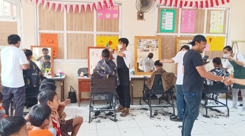 Kepala Sekolah Tuti Alawiyah Apresiasi Karang Taruna Desa Dayeuh, Gelar Pangkas Rambut Gratis Di SDN Babakan 04 Cileungsi