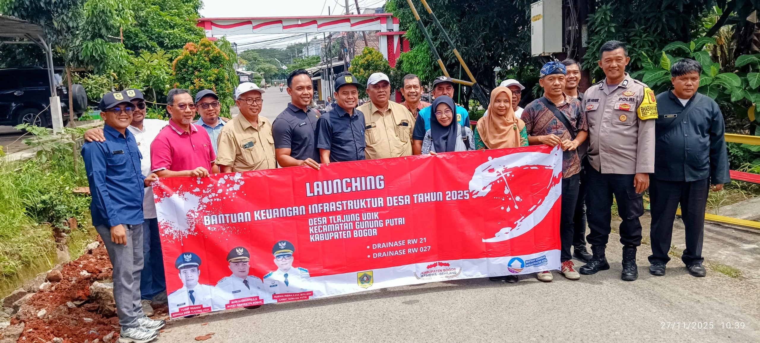 Penuhi harapan warga RW 21 dan RW 027, Pemerintah Desa Tlajung Udik, Kecamatan Gunung Putri, Kabupaten Bogor, Pemerintah Desa Tlajung Udik memulai pembangunan drainase dari Bantuan Keuangan Infrastruktur Desa (BanKeu), Tahun 2025 Tahap I pada Kamis (27/11/2025).