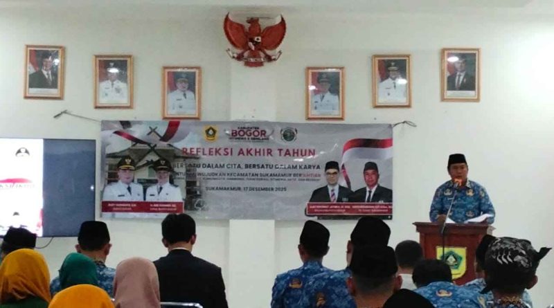 Mengusung tema “Bersatu dalam Cita, Bersatu dalam Karya” untuk mewujudkan Kecamatan Sukamakmur BERIKHTIAR (Bersih, Inovatif, Komunikatif, Harmonis, Terintegrasi, Istimewa, Adaptif dan Religius) Pemerintah Kecamatan Sukamakmur Kabupaten Bogor melaksanakan kegiatan Refleksi Akhir Tahun 2025 di Aula Kantor Kecamatan setempat Rabu (17/12/25).