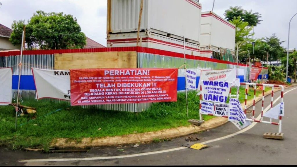 Pemerintah Kabupaten Bogor melalui Dinas Penanaman Modal dan Pelayanan Terpadu Satu Pintu (“DPMPTSP”) resmi menerbitkan Keputusan Pembekuan Persetujuan Bangunan Gedung (“PBG”) atas nama PT Mekanusa Cipta selaku Pengelola Kota Wisata Cibubur (Sinarmas Land) yang cacat hukum, namun selama ini terus dipaksakan menjadi dasar pembangunan gedung perkantoran 7 (tujuh) lantai milik PT Matra Graha Sarana (FIF Group) yang berada di Cluster Virginia Kota Wisata, di Desa Ciangsana, Kecamatan Gunung Putri.